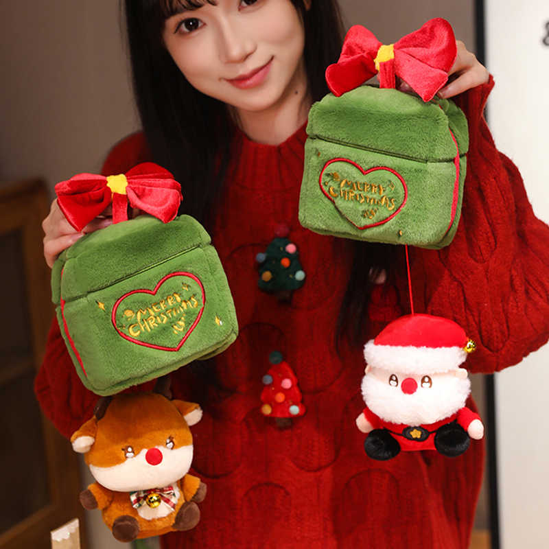 聖誕禮物盒藏驚喜!一掀開~聖誕老人/麋鹿跳出來討抱抱✅ 嬰兒級親膚絨毛:過敏兒攏免驚✅食品級填充棉:揉N遍也不變形✅手工刺繡五官:耐看不脫線