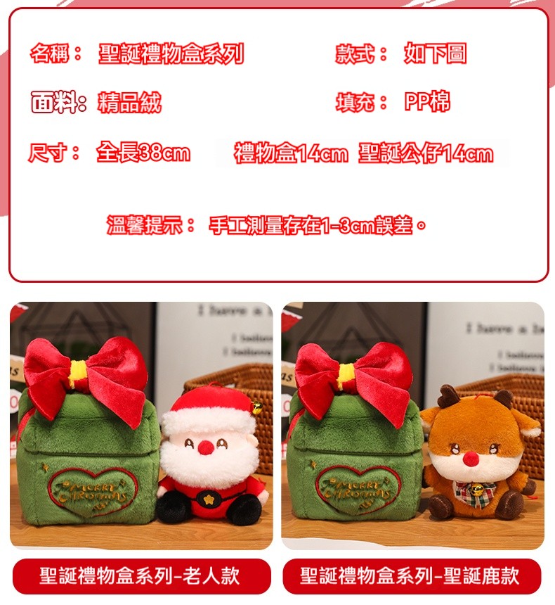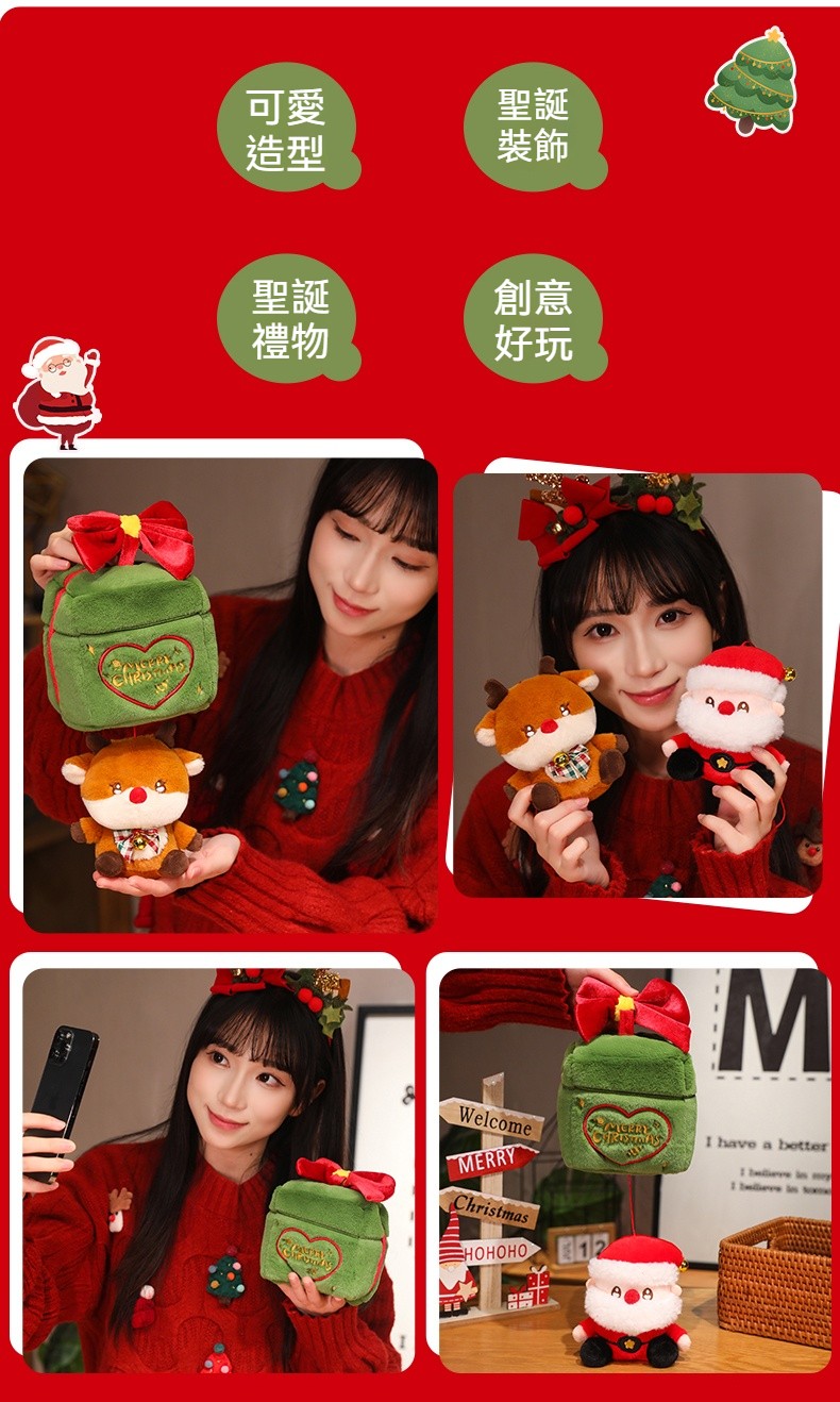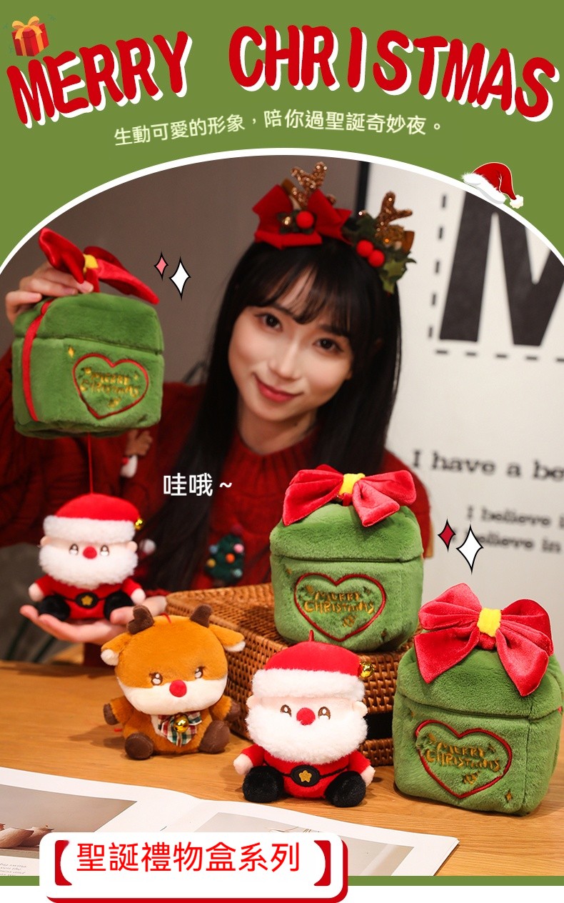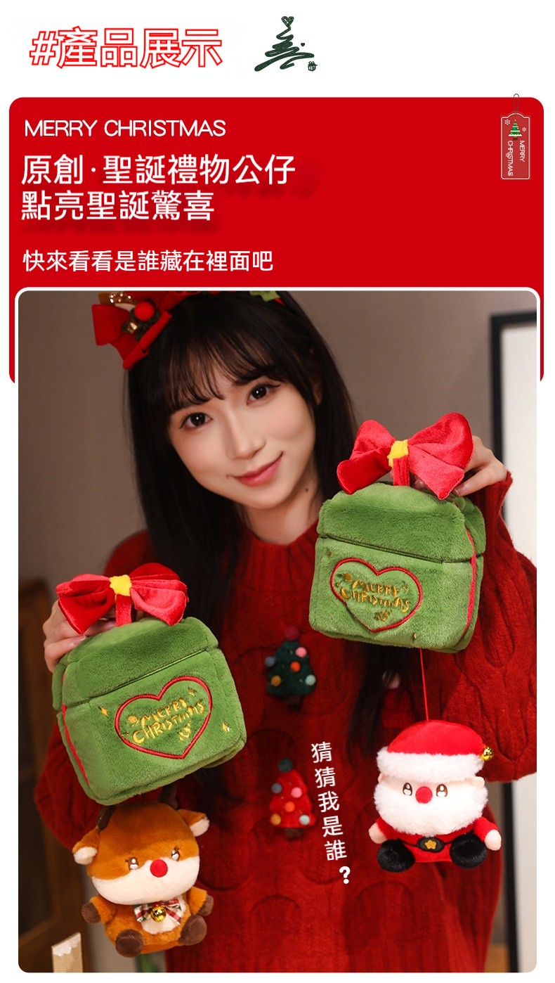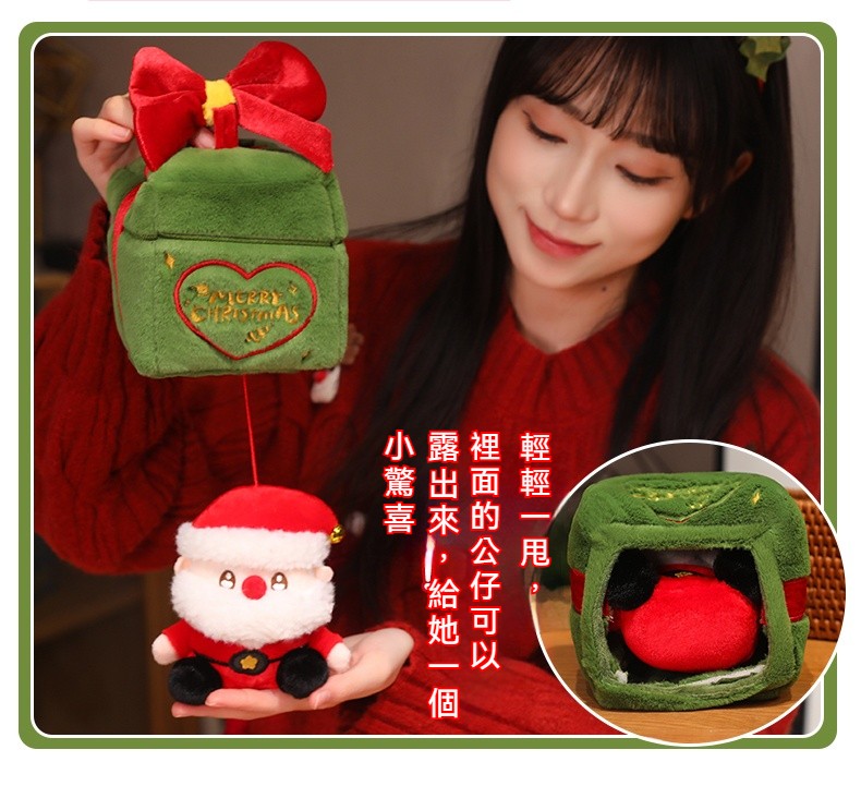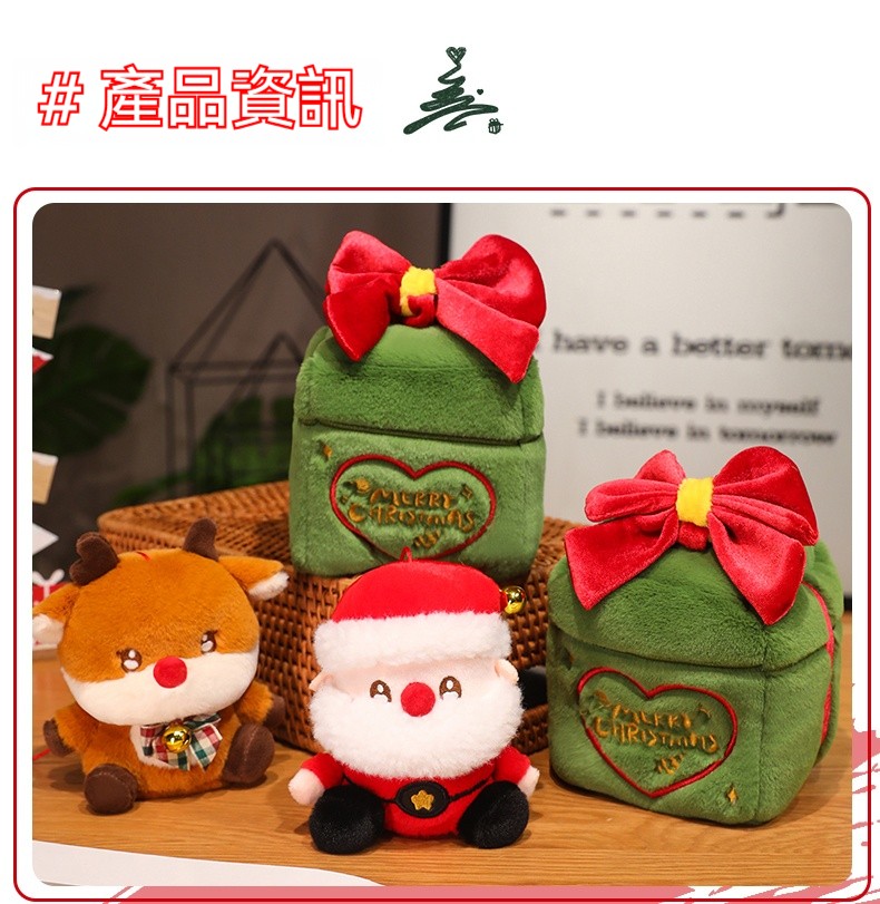 聖誕禮物盒藏驚喜!一掀開~聖誕老人/麋鹿跳出來討抱抱✅ 嬰兒級親膚絨毛:過敏兒攏免驚✅食品級填充棉:揉N遍也不變形✅手工刺繡五官:耐看不脫線